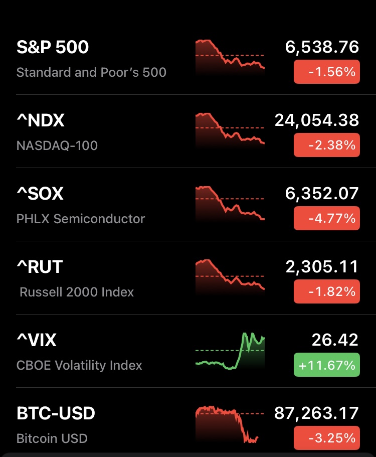 ビットコインの下落は、AI関連など、これまで相場を牽引してきたスター銘柄が一斉に調整局面に入っている構図と一致しています。
