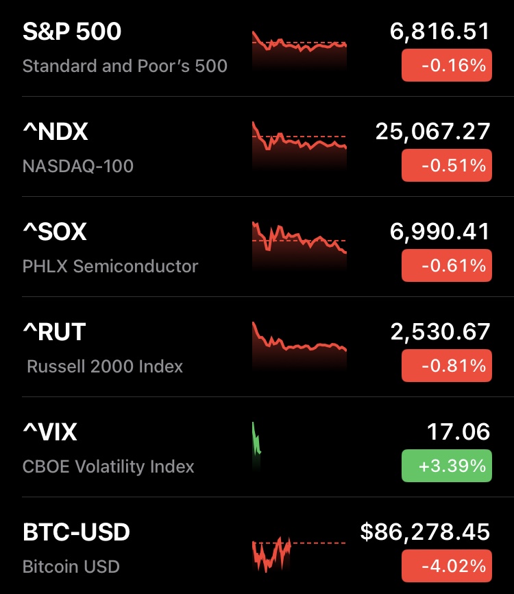 特にナスダック総合指数は-0.59%の下落となり、AI関連株が重しとなり市場を押し下げました。