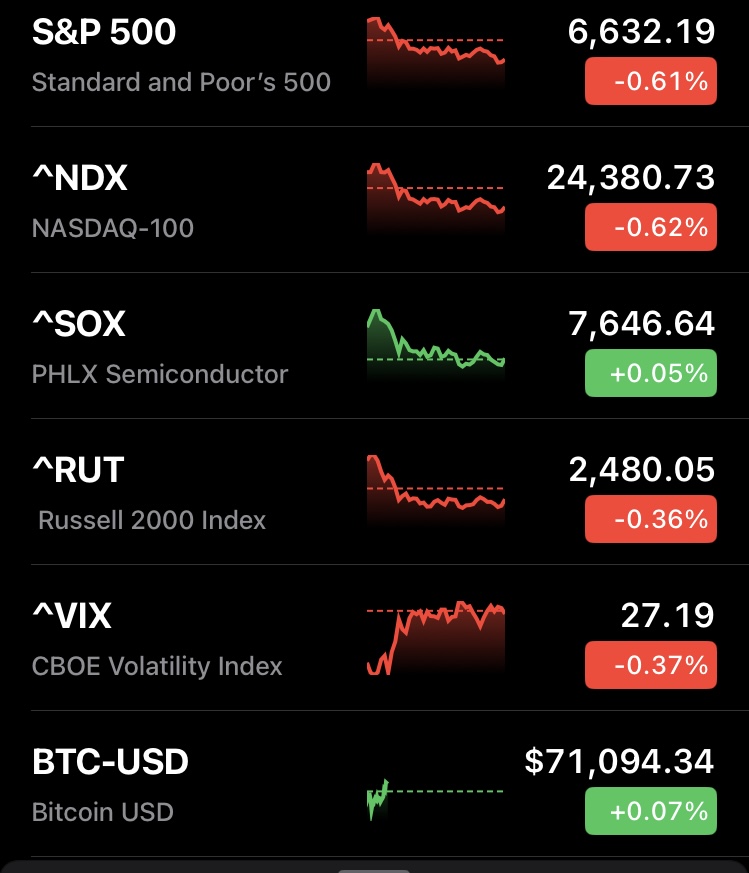 3月13日の米国株式市場は、主要指数が揃って下落し、S&P500は前日比0.61%安、ナスダックは0.93%安となりました。
