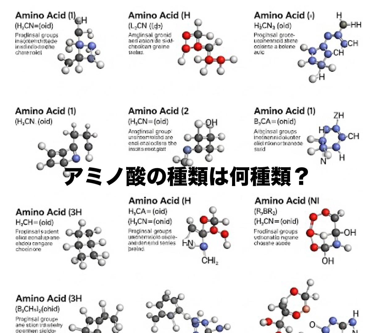 これらのアミノ酸は、体内で合成できる 非必須アミノ酸 (11種類) と、食事から摂取する必要がある 必須アミノ酸 (9種類) に分けられます。