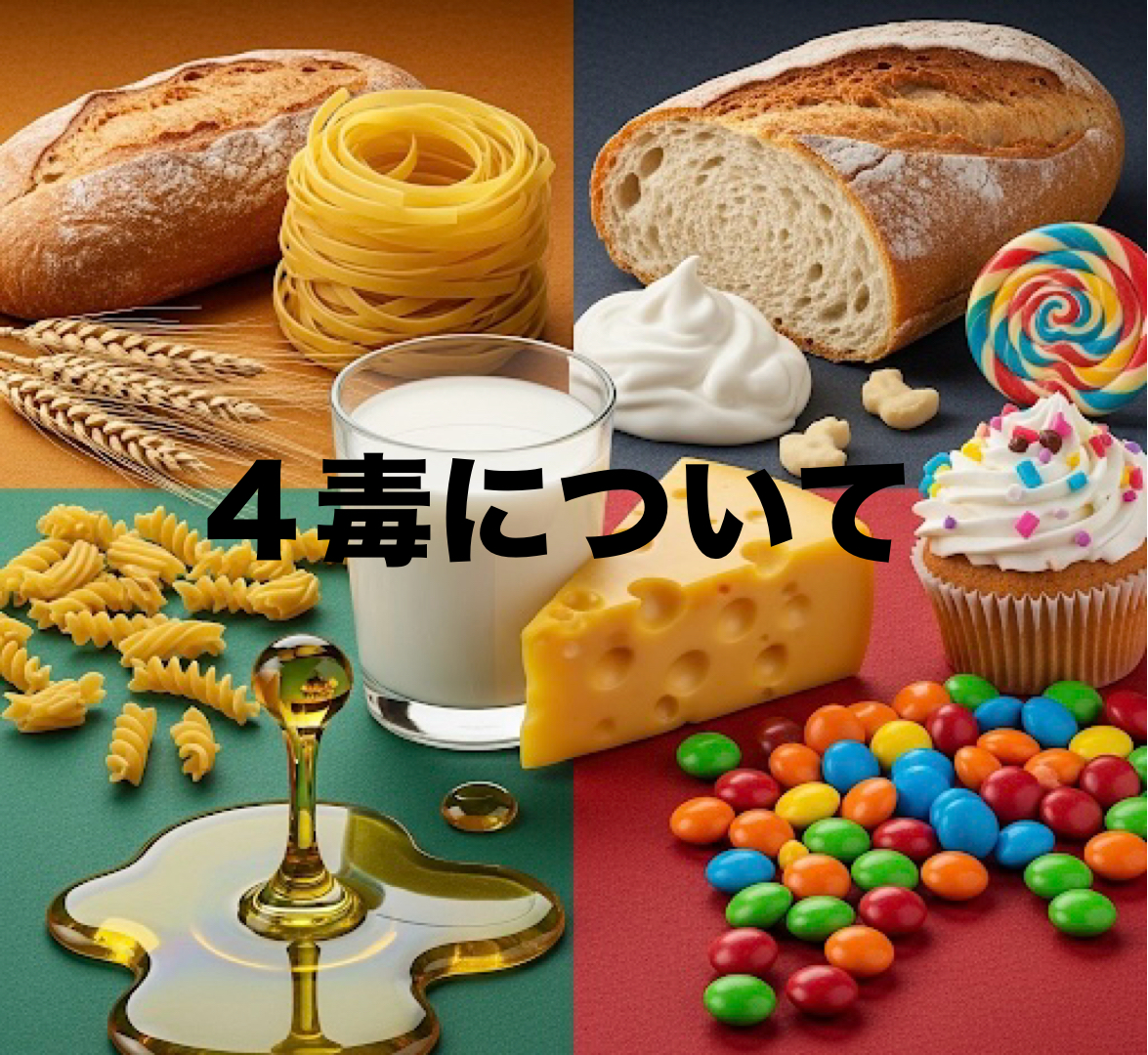「4毒」とは、現代の食生活において、特に健康に良くないとされる4つの食品群を指す言葉で、歯科医で政治家の吉野敏明先生が提唱しています。